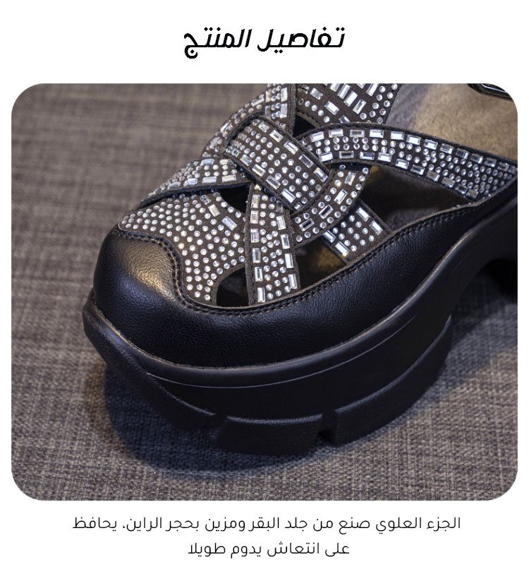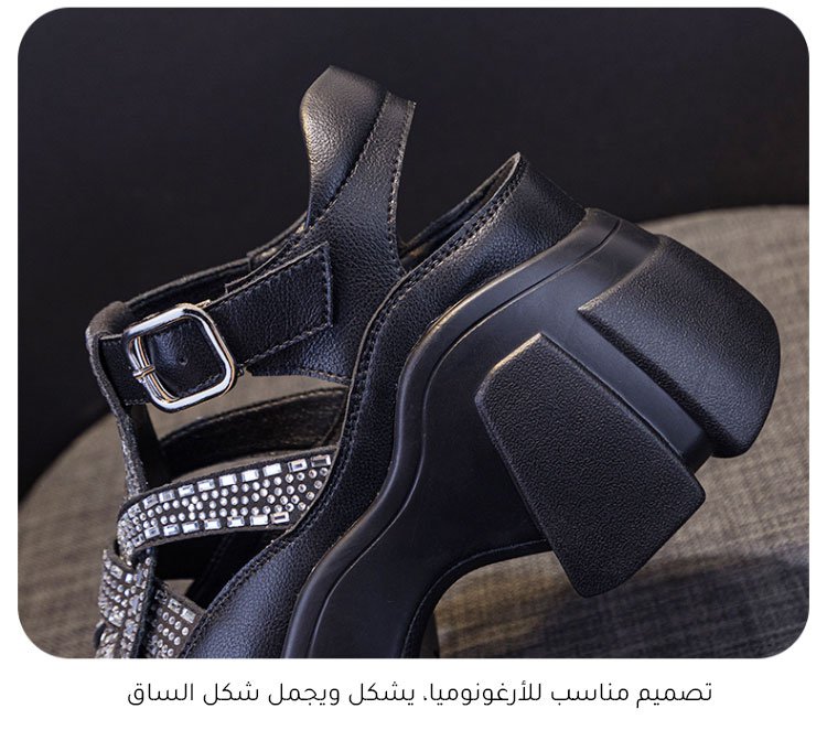 يستخدم النعال تقنية امتصاص البورون، والتي يمكن أن تناسب قوس القدم بشكل جيد، وتصحح القوس، وتحسن شكل الساق، وهي مصممة خصيصًا لتكون أوسع من أصابع القدم العادية، ويمكن ارتداؤها من قبل الأشخاص الذين يعانون من الدهون والمتورمة. الجزء العلوي مصنوع من جلد البقر المستورد من أمريكا الجنوبية، التصميم المجوف يجلب إحساسًا بالبرودة، وسيدوم لمدة 20 عامًا، ارتفاع الكعب 9 سم، ويبدو طول ساقيك 1.5 متر عند ارتدائه.