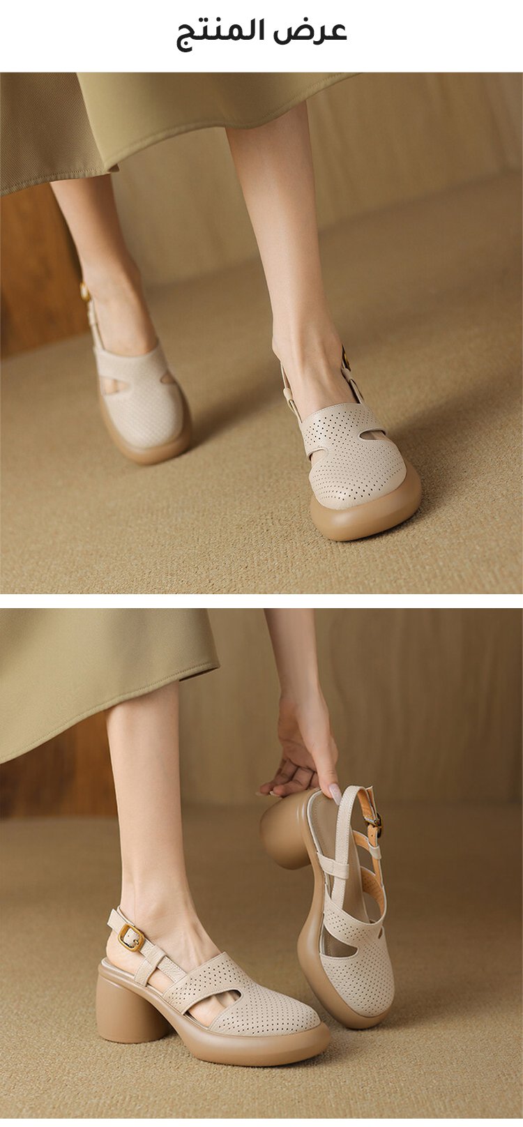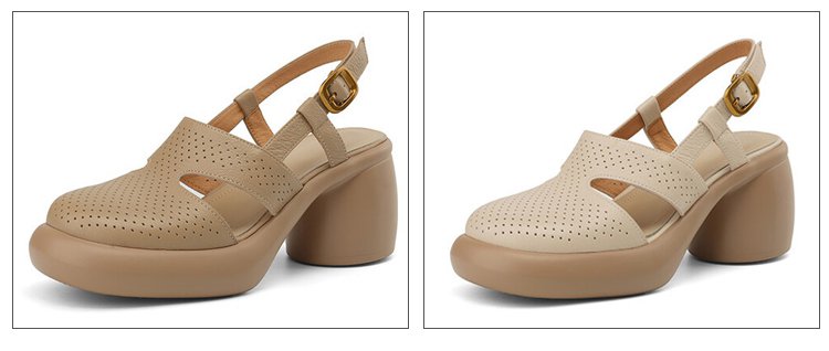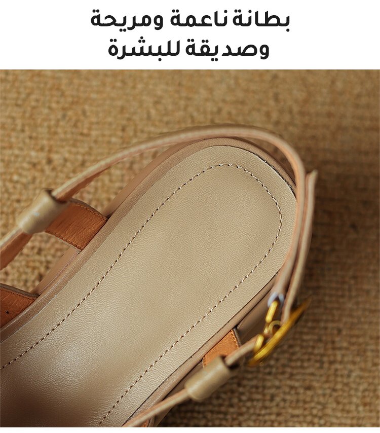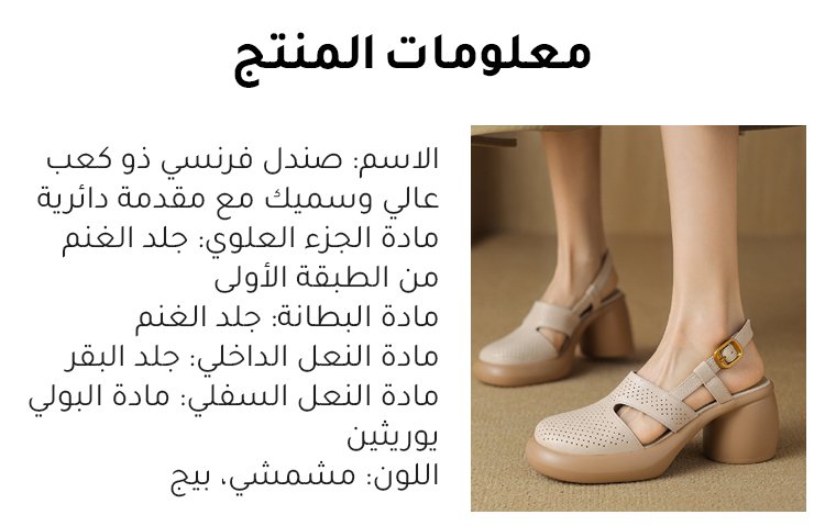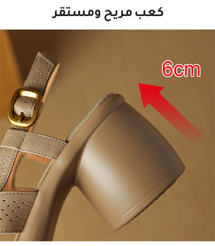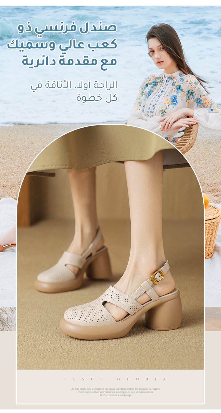 صندل فرنسي ذو كعب عالي وسميك مع مقدمة دائرية