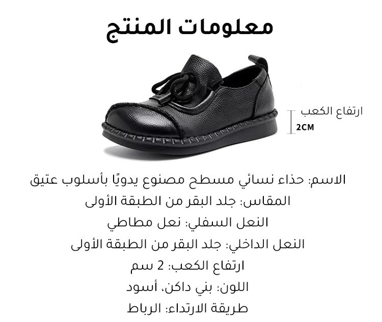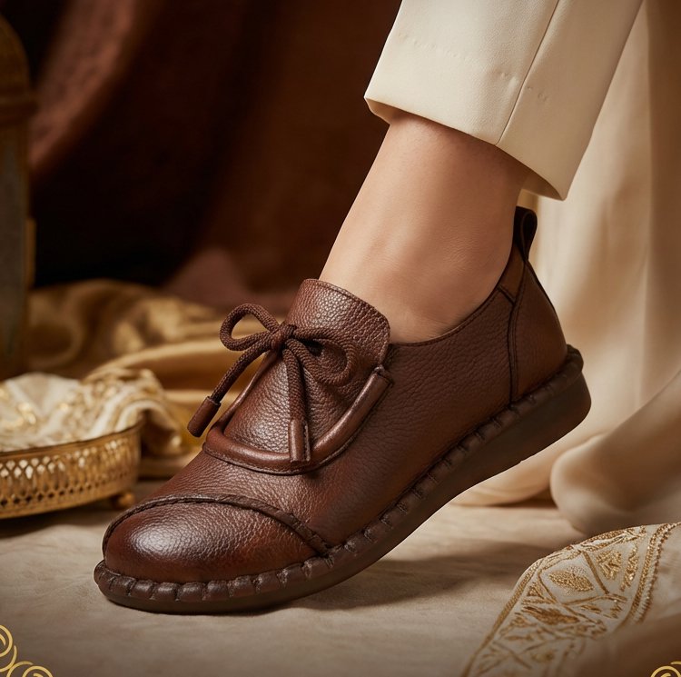 حذاء نسائي مسطح مصنوع يدويًا بأسلوب عتيق